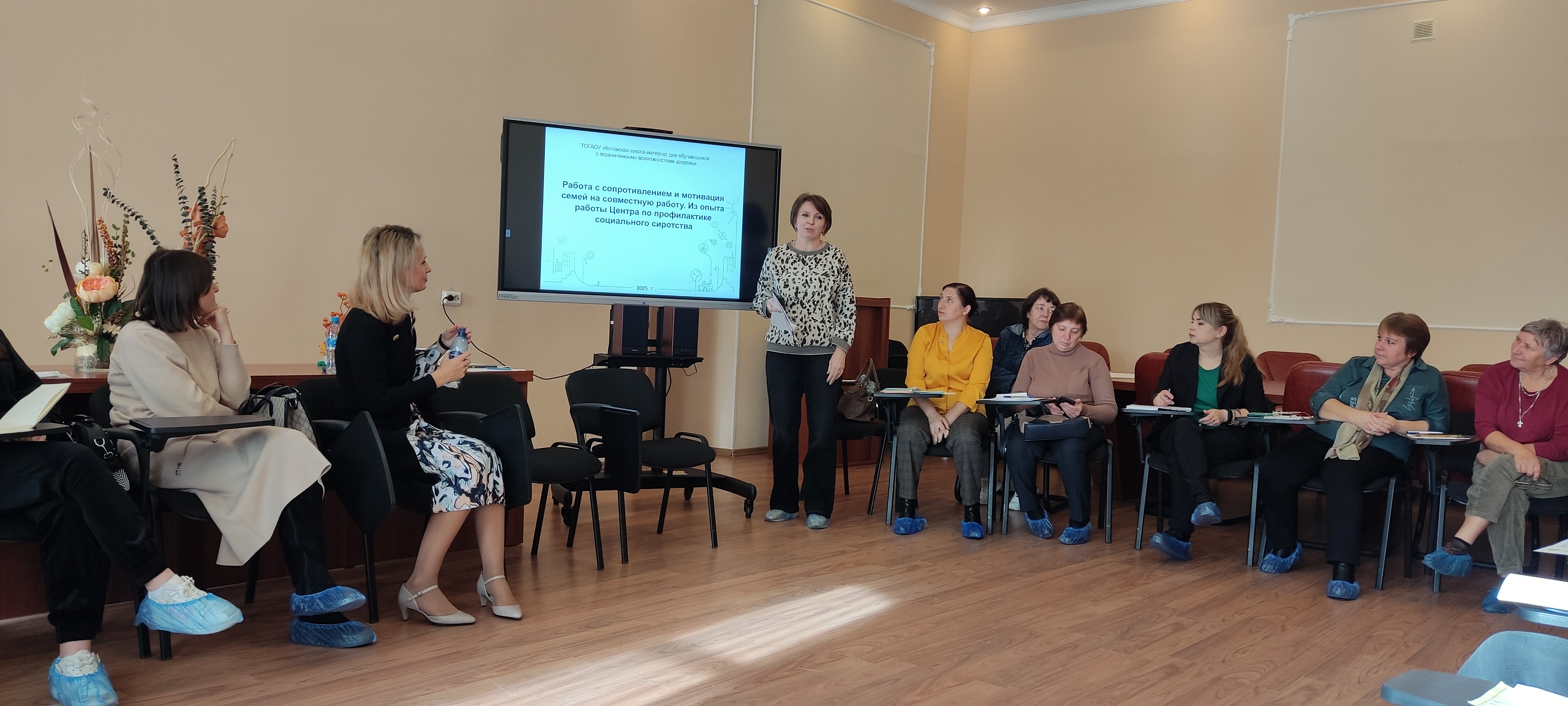14.10.2025 г. прошел семинар в ТОГБУ «Центр по развитию семейных форм устройства детей-сирот и детей, оставшихся без попечения родителей, «Ради будущего» г. Тамбов, направленный на развитие коммуникативных навыков в работе с семьями, оказавшимися в трудной жизненной ситуации. Специалисты центра по профилактике семейного неблагополучия и социального сиротства приняли активное участие в мероприятии. Кураторы в тренинговых занятиях освоили практические методы работы с семьями «по случаю», направленные на мотивацию к сотрудничеству родителей и специалистов.