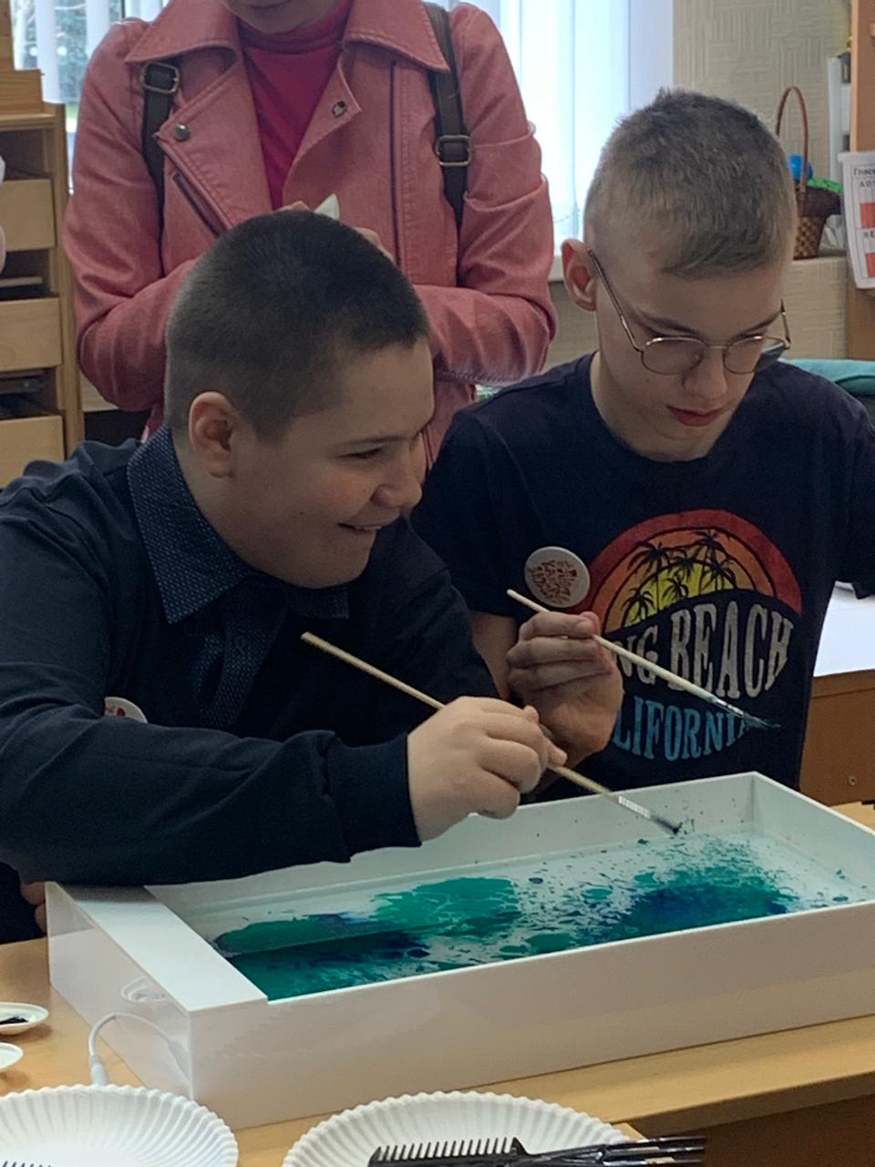 На мастер-классе ребята вместе со своими мамами попробовали свои силы в нетрадиционном рисовании морского пейзажа в технике эбру. На фоне тихого шума волн ребята находили морских обитателей, составляли морскую композицию. Свое произведение ребята забрали домой как память о чудесной встрече с новыми друзьями.