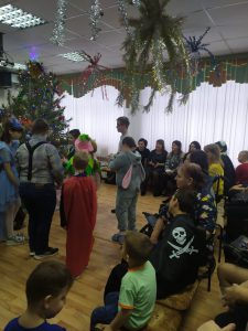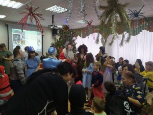 А с появлением Деда Мороза и Снегурочки начался настоящий праздник с песнями и танцами, хороводами вокруг ёлки. Читали стихи Деду Морозу и Снегурочке, фотографировались с персонажами, получали новогодние подарки, благодарственные письма и грамоты.