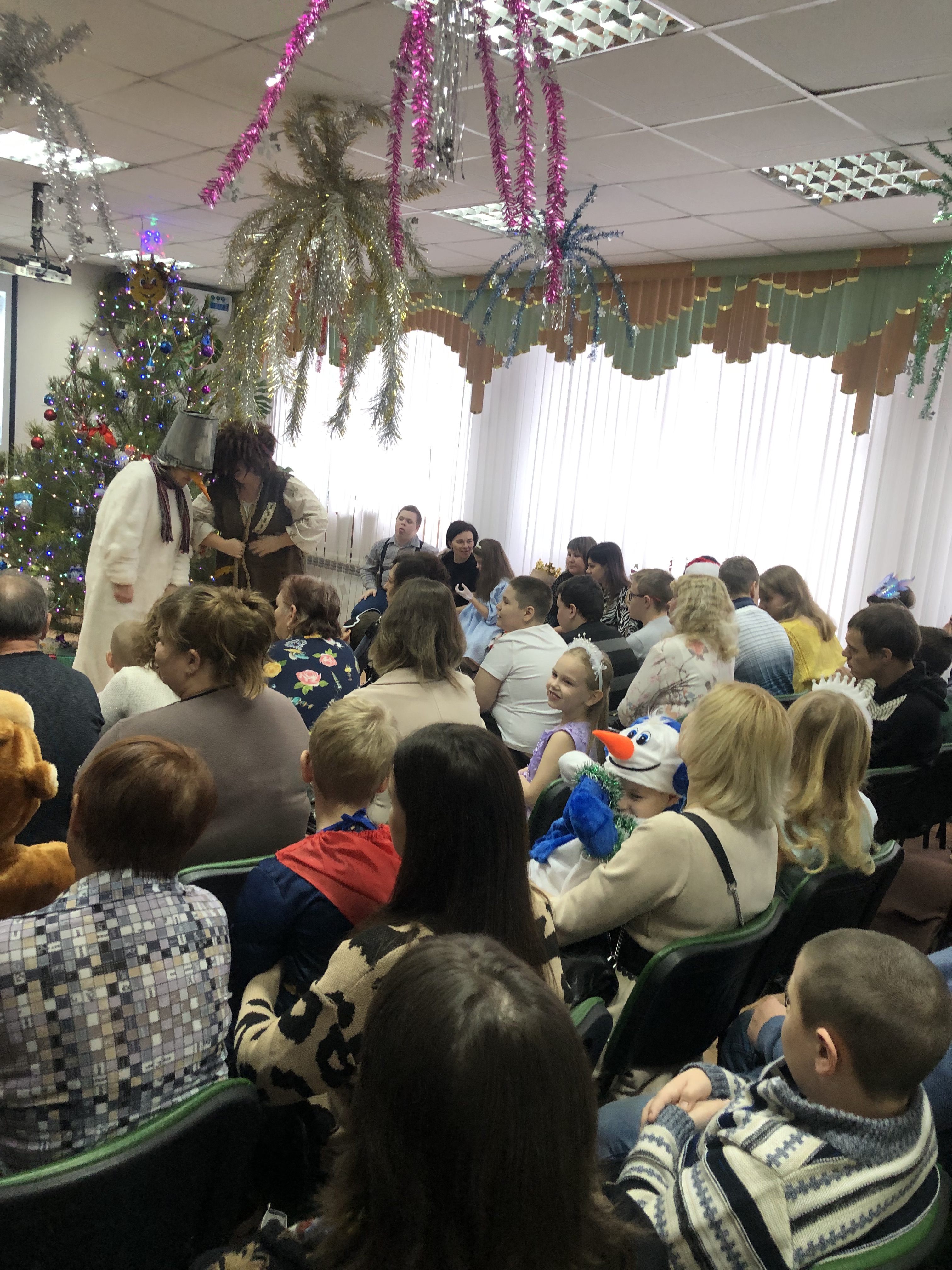 А с появлением Деда Мороза и Снегурочки начался настоящий праздник с песнями и танцами, хороводами вокруг ёлки. Читали стихи Деду Морозу и Снегурочке, фотографировались с персонажами, получали новогодние подарки, благодарственные письма и грамоты.